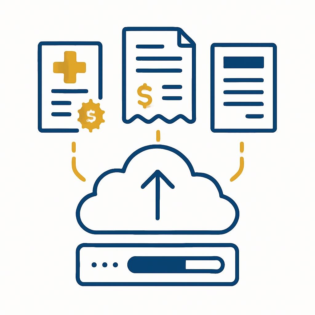 Anexe seus honorários médicos, notas fiscais ou contratos de convênio de forma digital.